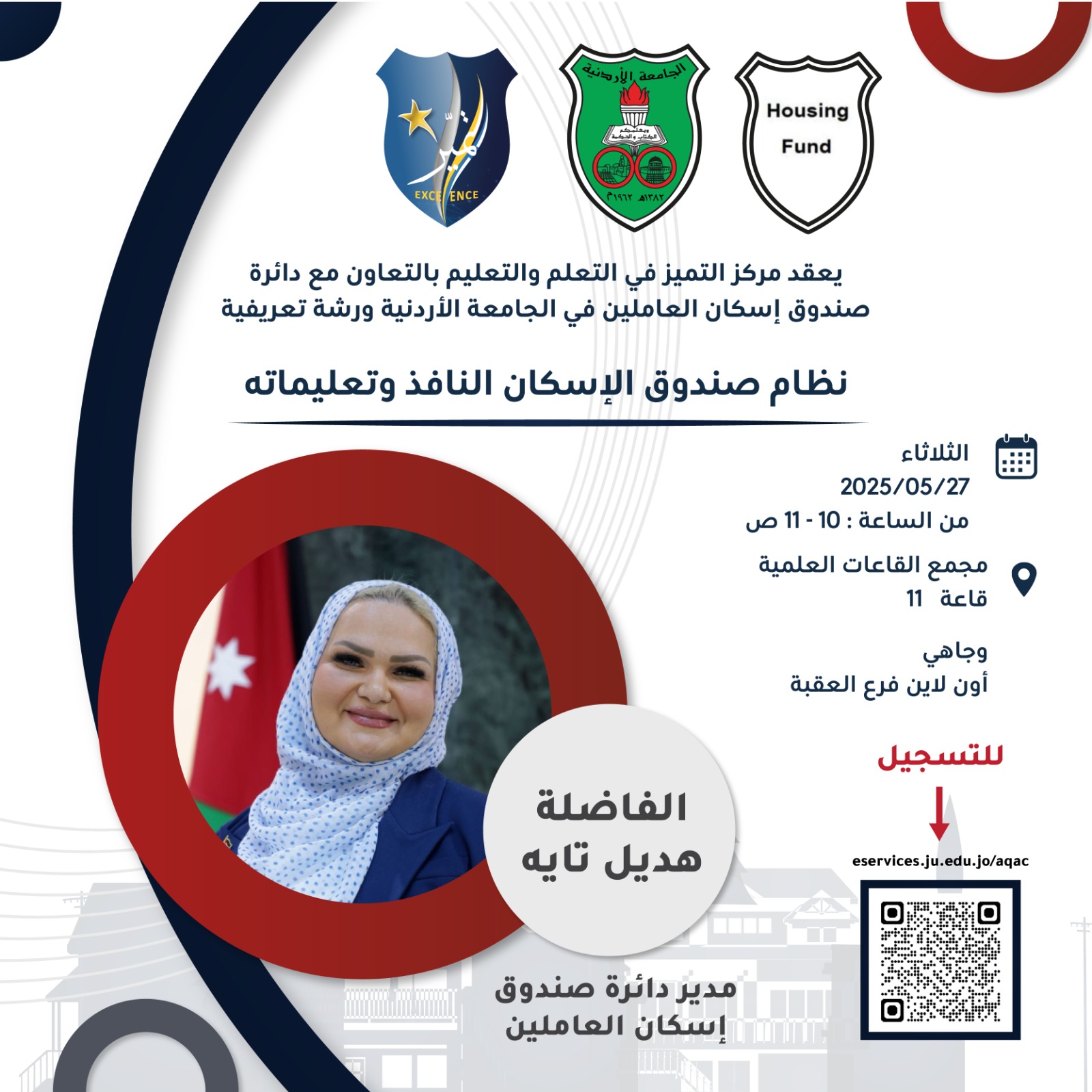 ينظم مركز التميّز في التعلّم والتعليم رشة تعريفية بعنوان نظام صندوق الإسكان النافذ و تعليماته